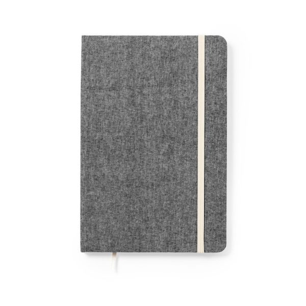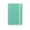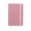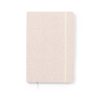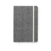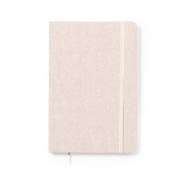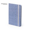 Bloco de notas de linha nature fabricado em algodão reciclado. Com capas duras e elástico de fixação em contraste. Interior com 100 folhas lisas e marca páginas de tecido. Disponível numa ampla gama de cores, com distintivo algodão reciclado na contra capa. Certificação GRS (Global Recycled Standard / Standard de Reciclagem Global), que garante a origem reciclada do material usado para fabricar o produto.