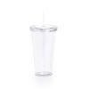 Divertido copo de 750 ml de capacidade com corpo transparente numa variada gama de cores vivas. Com tampa de rosca e palhinha a condizer.
