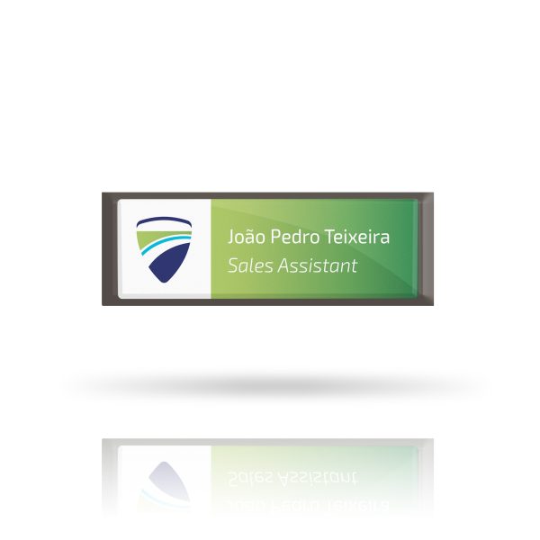 Crachá magnético antracite de forma rápida e fácil. Mantém-se em todos os tipos de tecidos com uma forte aderência sem os danificar. É perfeito para identificar o utilizador perante o público. Personalizável em 1 face com inserção de papel.
