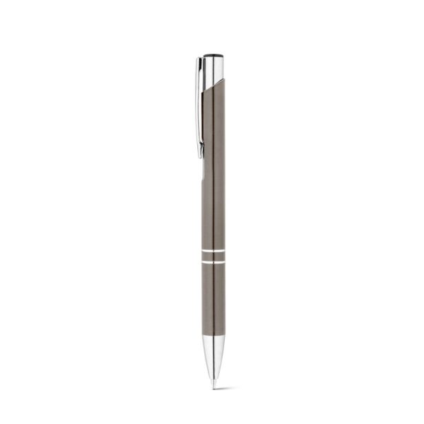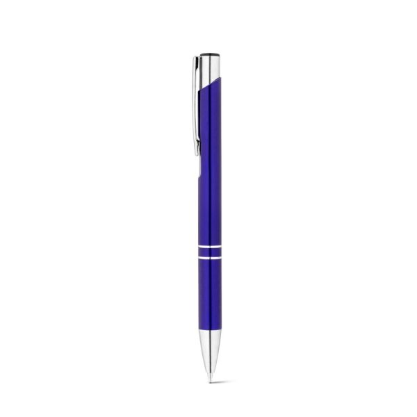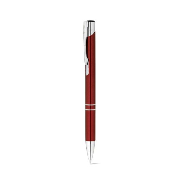 Esferográfica em alumínio reciclado, disponível em várias cores. Escrita azul.