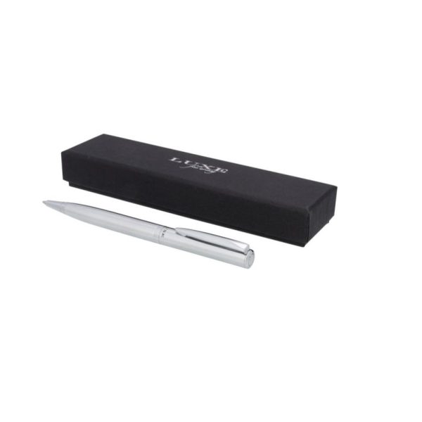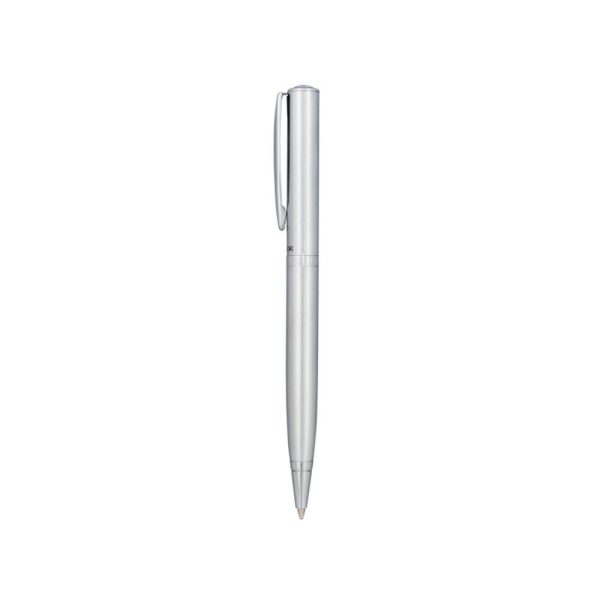 Esferográfica em metal, leve e de design exclusivo disponível com acabamento dourado fosco escovado com detalhes em dourado e prata fosco escovado com detalhes cromados. Incluído recarga de alta qualidade e caixa de presente.