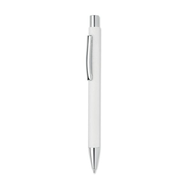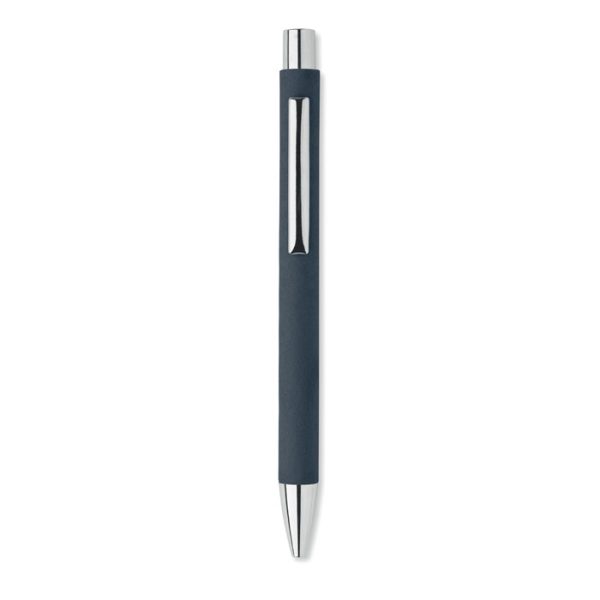 Esferográfica com botão de pressão em papel reciclado, clipe de metal e encaixes de plástico. FSC®-certified | FSC RECYCLED, P9, FSC-C213206. Escrita azul.