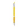 Esferográfica em ABS com antideslizante colorido e clipe. Escrita a preto.