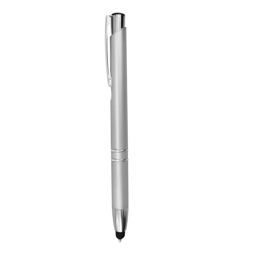 Esferográfica de plástico, touch e clip de metal. Escrita azul e sistema pulsar. Uma mistura equilibrada entre o plástico e o metal, com um design clássico de dois anéis. Os detalhes são prateados e o corpo é colorido. Incluí touch.