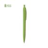 Esferográfica com mecanismo de pressão de linha natural. Corpo e acessórios em cana-de-trigo, a fim de promover o uso de matérias-primas naturais e reduzir as emissões poluentes. Escrita azul.