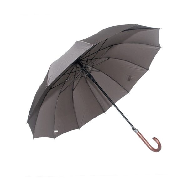 Guarda-Chuva com 1,30 mt de diâmetro Abertura automática 12 varas fibra – Anti-vento Cabo curvo madeira.