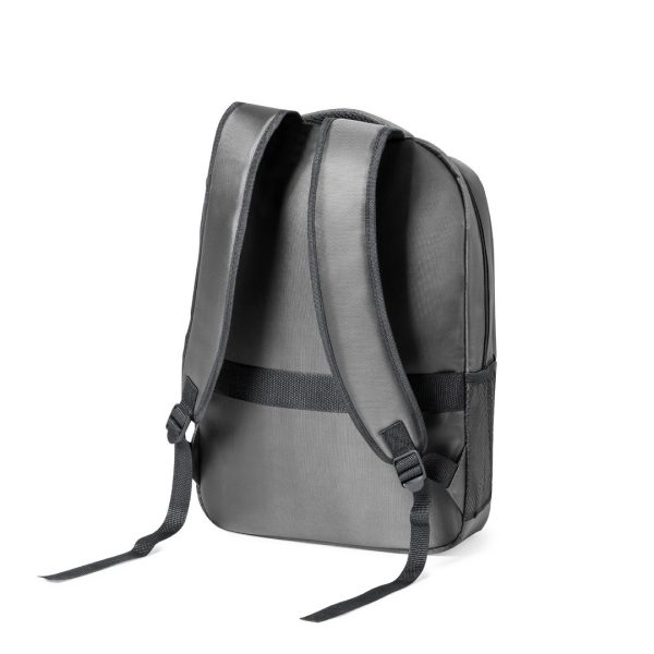 Mochila de alta qualidade fabricada em RNYLON 420D. Compartimento principal com fecho de correr a condizer e duplo puxador. Inclui bolso exterior com fecho de correr e 2 bolsos laterais de rede. Acolchoado na pega, parte traseira e alças para ombros, estas últimas ajustáveis. Interior com compartimento acolchoado para computador portátil de até 15 polegadas e acessório nas costas para ajuste em trolley. Disponível numa variada gama de cores, com distintivo reciclado na etiqueta exterior. O material RNYLON é elaborado a partir de plástico reciclado, para assim fomentar a reutilização de resíduos plásticos e ajudar na sustentabilidade do planeta.